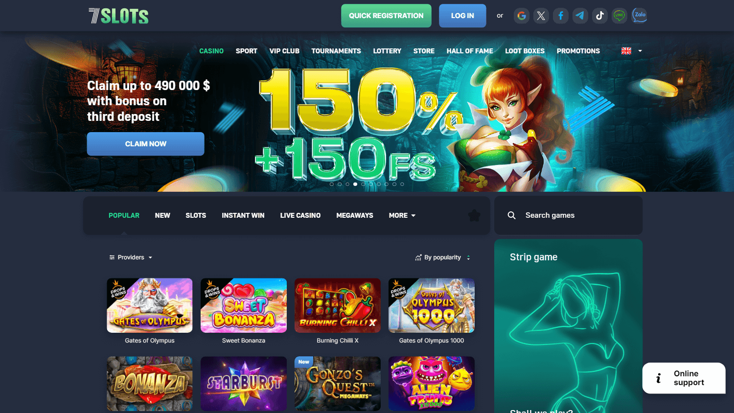 7Slots es ideal para los fanáticos de las tragamonedas. Este casino tiene una de las colecciones más amplias de slots en Chile, con títulos tanto clásicos como modernos, todos con alta tasa de retorno (RTP).